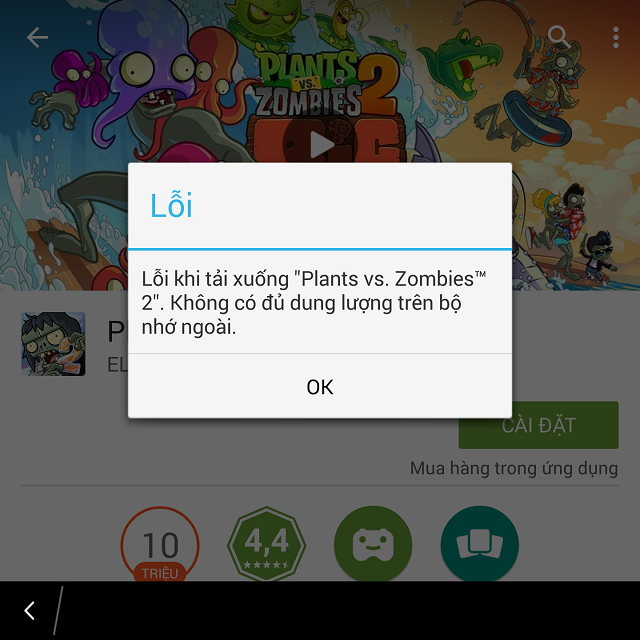 Câu hỏi 2: Tại sao thẻ nhớ và bộ nhớ điện thoại còn trống nhiều mà tải ứng dụng trên CH Play vẫn báo không đủ bộ nhớ?