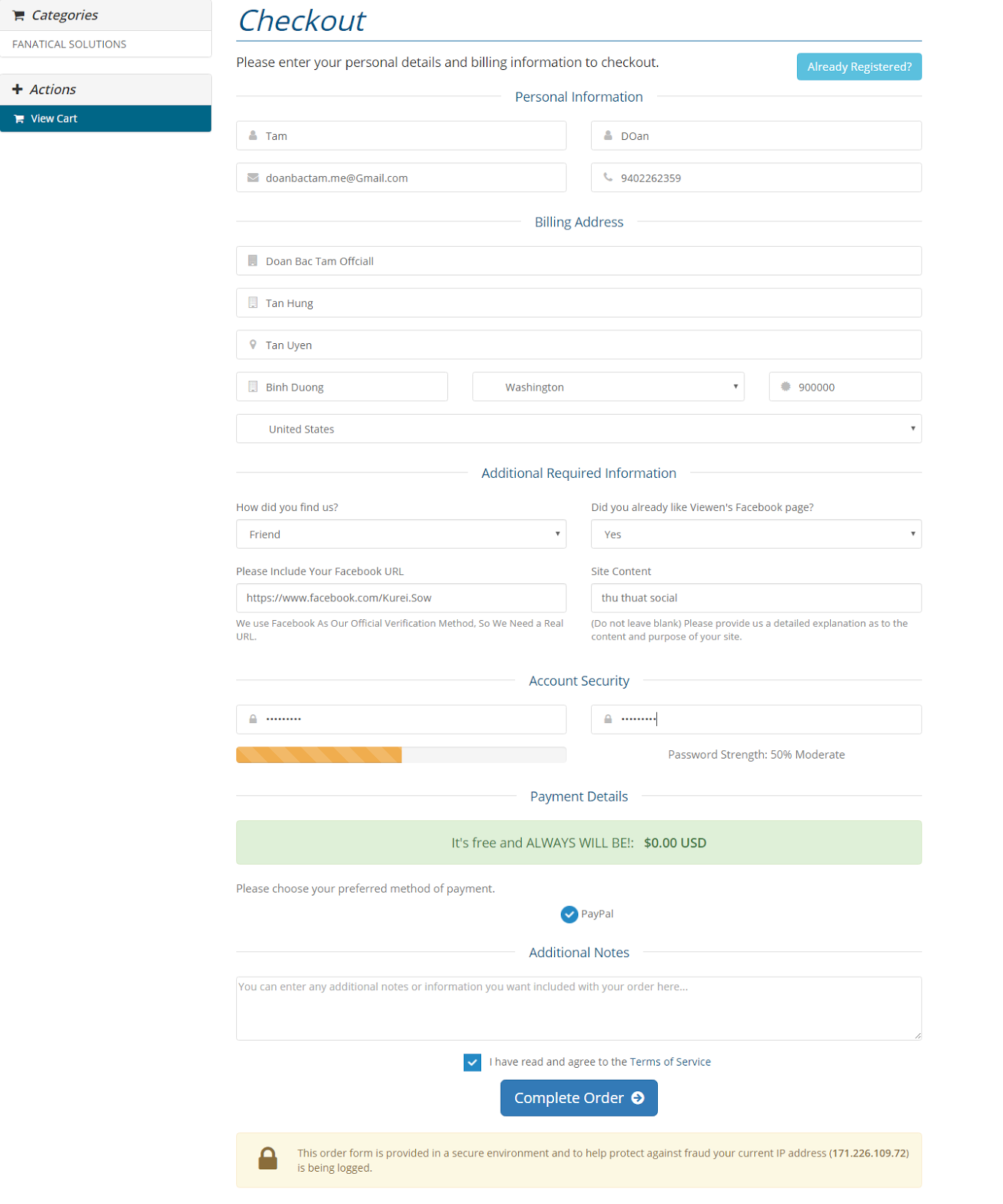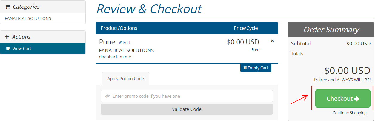 Như các bạn đã thấy Viewen cung cấp hoàn toàn miễn phí nhé chọn vào Checkout