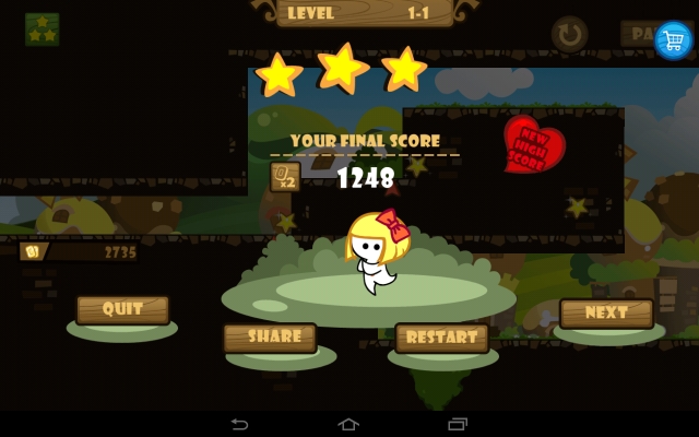 Lối điều khiển đơn giản đến không ngờ có lẽ cũng là một yếu tố có thể xem xét, game hoàn toàn phù hợp với trẻ em. Còn với người lớn, những màn chơi được thiết kế với không gian nhỏ, tiết tấu nhanh cũng sẽ đảm bảo bạn không gặp những giây phút bực mình khi đi mãi không qua màn, phù hợp cho những khoảnh khắc giải trí ngắn ngủi.