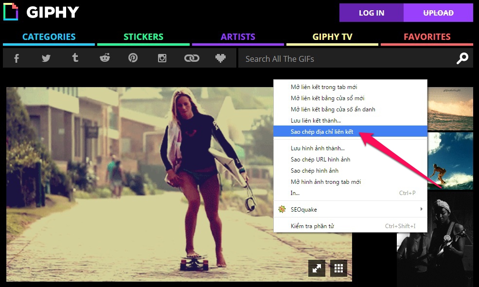 Việc đầu tiên mà bạn cần làm đó là tìm và copy (sao chép) đường link của file ảnh GIF mà bạn muốn chèn vào bài đăng. Bạn có thể tìm thấy những đường link này ở những trang chia sẻ ảnh như: Picasa, Tumblr, Imgur, Giphy,...