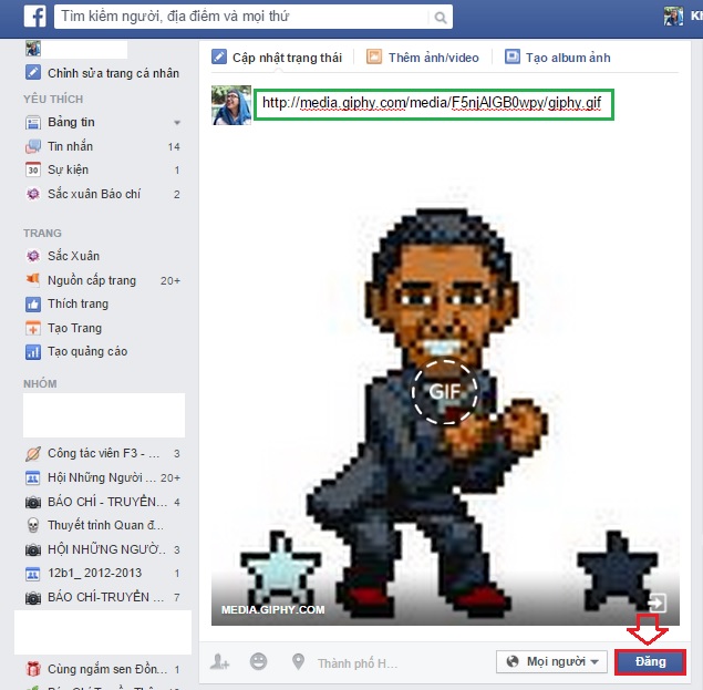 Sau đây là những bước không thể đơn giản hơn để bạn có thể đăng thành công một ảnh động lên NewsFeed.