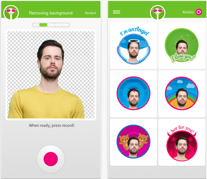 Emu cho bạn tạo ra sticker độc đáo từ ảnh selfie của mình rồi chèn vào cuộc hội thoại trên Facebook Messenger. Khi chụp ảnh selfie xong, bạn tách nền bằng tính năng tách nền được tích hợp sẵn trên Emu và chọn một mẫu giao diện sticker phù hợp.